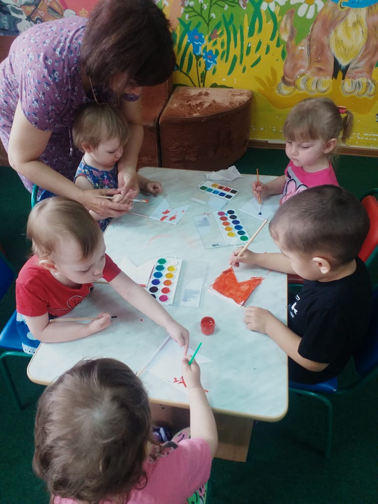 Материал: ақ қағаз парақтары, гуашь, бояулар, қағаз майлықтар, жалау үлгісі